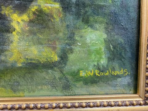 E W ROWLANDS oil on canvas - Italian type scene, 50 x 74cms and RAY M LOGAN oil on board - autumnal woodland scene, 54 x 45cms