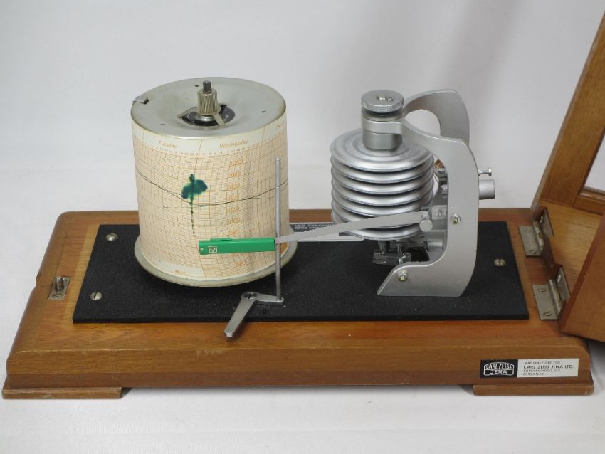 CARL ZEISS JENA LTD BAROGRAPH - 18cms H, 35cms W, 18cms D (lacking card undertray)