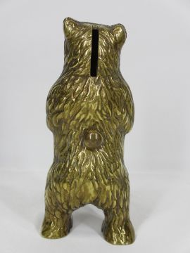 BRASS STANDING BEAR MONEY BOX - 15cms H