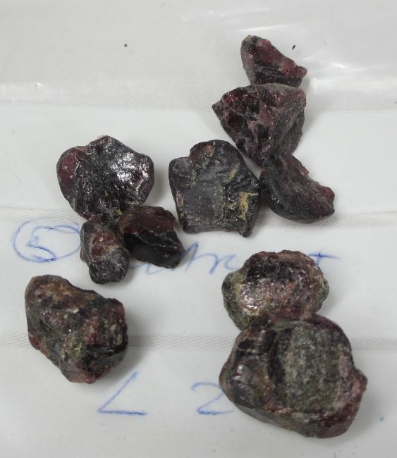 SEMI-PRECIOUS GEMSTONES - mainly natural uncut state including garnet, sapphire, peridot, blue quartz, nephrite, ETC, along with eight small metal scoops