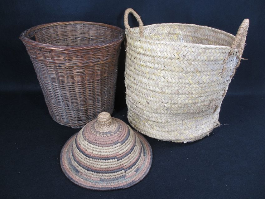 TRIBAL STYLE WOVEN BASKETS, a mixed quantity, 53cms H, 60cms diameter the largest