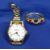 RAMONA EIGHTEEN CARAT GOLD CASED LADY'S WRISTWATCH on a gilt metal bracelet and an eighteen carat gold ring set with small diamonds and rubies (largest central stone missing), size mid O-P, 4grms (watch not running)