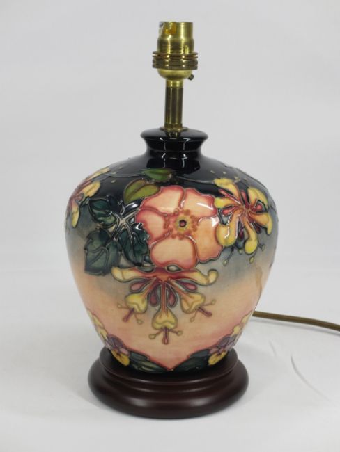 MOORCROFT OBERON TABLE LAMP WITH SHADE - 40cms overall H, designed by Rachel Bishop, 29cms H minus lampshade