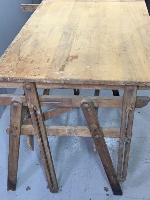 SJOBERGS WORKBENCH MADE AT BRODERNA, SJOBERGS IN STOCKARYD, SWEDEN, 82cms H, 140cms W, 84cms D and a wooden architect's or similar desk