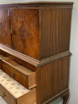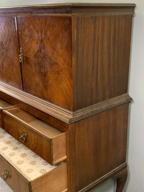 WALNUT EFFECT TALLBOY with two upper cupboard doors over two short and one long drawer, 128cms H, 94cms W, 47cms D