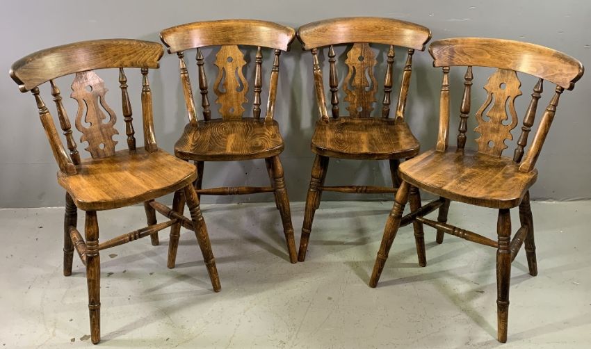 TABLE & FOUR CHAIRS - refectory table, 74cms H, 122cms W, 61cms D and pierced splatback chairs