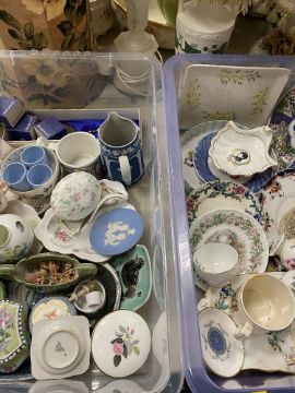 MIXED POTTERY & PORCELAIN (2 crates), two decorative pottery table lamps and an alabaster column table lamp