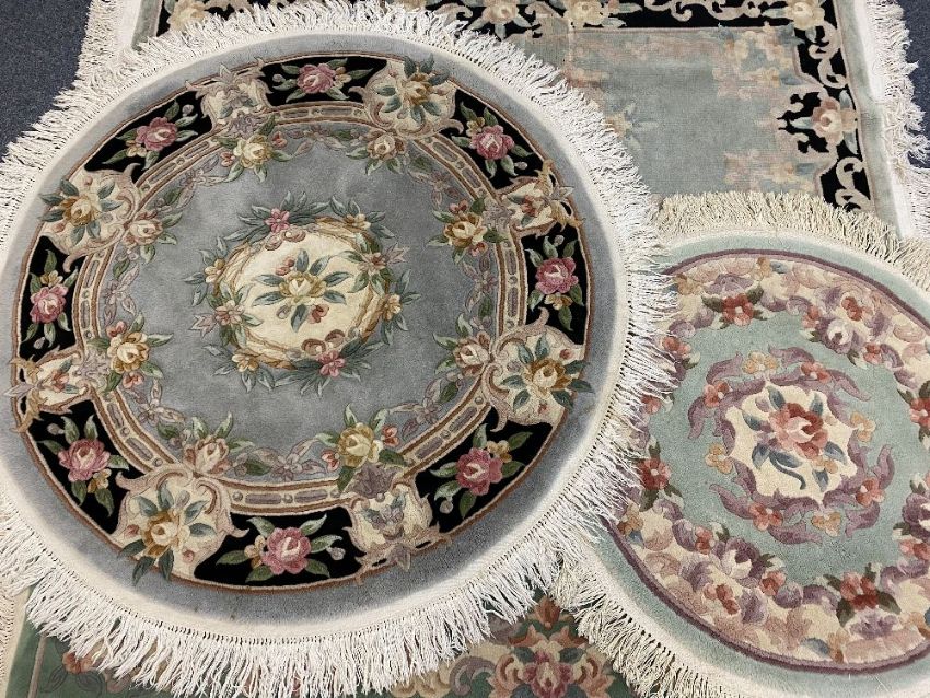 CHINESE WASHED RUGS (4) - two circular, 160cms diameter the largest and two oblong, 200 x 93cms the largest