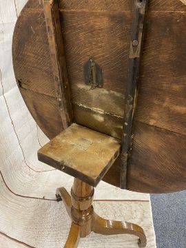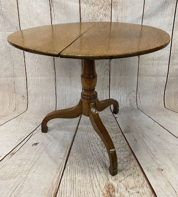 OAK TILT TOP TABLE - antique on tripod support, 72cms tall, 84cms diameter