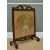 EARLY 20TH CENTURY OAK FIRE SCREEN with male peacock embroidered linen behind glass, 91cms high