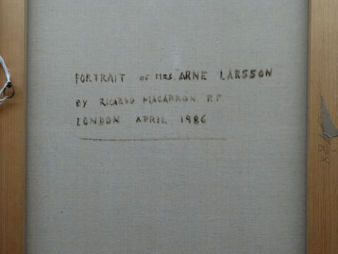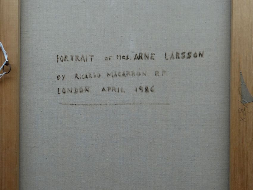 Provenance: private collection Cardiff, commissioned in 1986, by the subject's then husband, Arne Larsson, at a fee of £22,000.