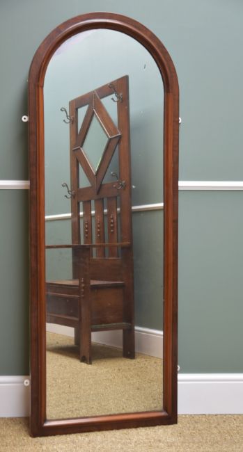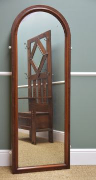 LATE VICTORIAN WALNUT WALL MIRROR, with arched top, 164cms high x 60cms w