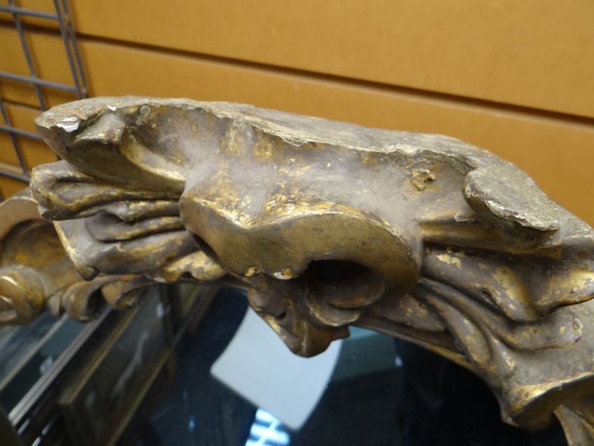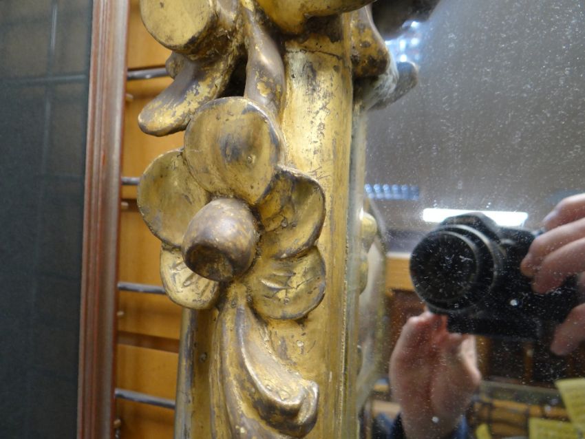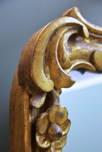 VICTORIAN ROCOCCO REVIVAL GILTWOOD PIER MIRROR, shell and C-scrolled moulded frame with floral embellishments, 212h x 105cms wComments: top half of rococo cresting missing.