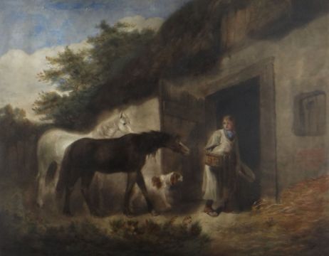 THREE 19TH CENTURY PRINTS, comprising AFTER JOHN FREDERICK HERRING & HENRY BRIGHT, lithograph with colour - The Meeting of Friends, in birds eye maple frame, (I) 50.5 x 83.5cms; AFTER GEORGE MORLAND, engraving with hand colour - The Horse Feeder, (I) 42 x 53.5cms; and No. XII Stable Amusement, 43.5 x 55.5cms (3)