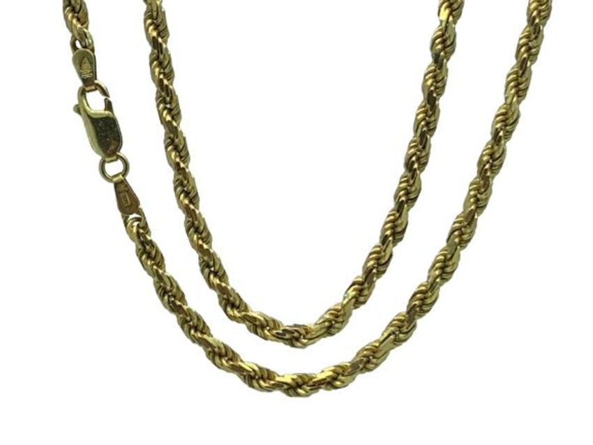 ITALIAN 9CT GOLD ROPE TWIST NECKLACE - 18.4grms, 46cms L open