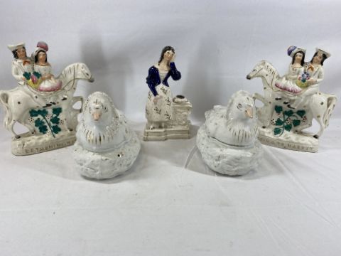 STAFFORDSHIRE DOVES ON NEST, a pair of flatbacks 'Returning Home' and 'Going to Market' and another