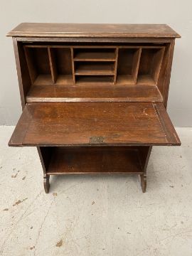 CIRCA 1900 COMPACT BUREAU with two lower shelves, 103cms H, 74cms W, 30cms D
