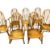 SEVEN WINDSOR STYLE ELBOW CHAIRS - light elm with spindle and hoop backs, 101cms H, 51cms W, 46cms D