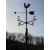 WROUGHT IRON WEATHER VANE having 'N', 'S', 'E' and 'W' pointers and a cockerel arrow, the column leaf decorated with square metal base, approximately 4 metres H