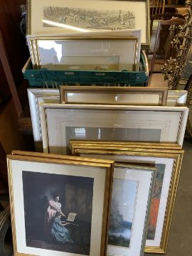 PAINTINGS & PRINTS ASSORTMENT to include a pair of unsigned watercolours - coastal scenes, 15 x 33cms, print after MARTIN FREDERICK HAMLIN - two figures at work and many others, (approximately 16 in total)