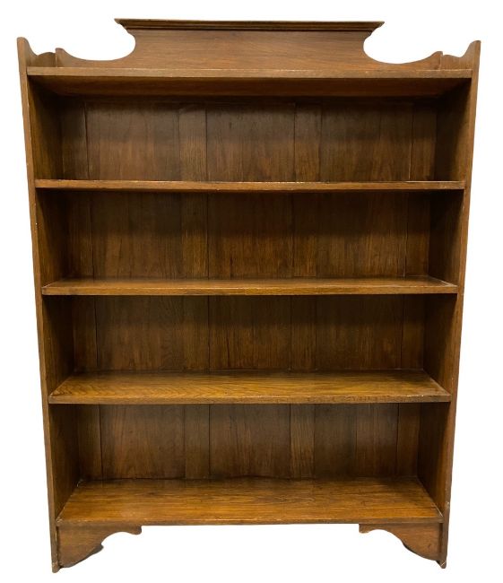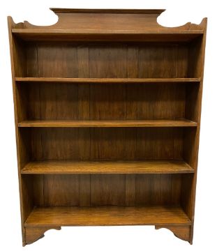 POLISHED OAK OPEN BOOKCASE, 124cms H, 92cms W, 20cms D