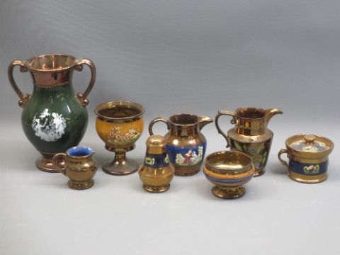 COLOURFUL ART GLASS VASES, Gaudy Welsh, copper lustre, Motto ware pottery, a mixed collection