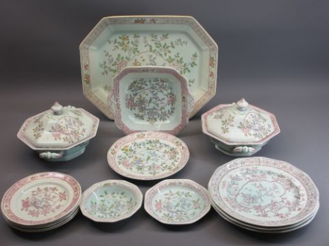 ADAMS CALYX WARE PART DINNER SERVICE - 15 pieces to include two covered tureens, 41 x 33cms meat platter, ETC