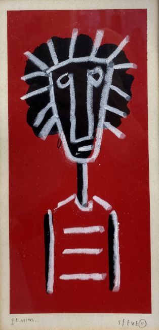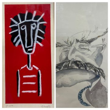 ST EVE (?) mixed media - figural native study, signed, 26 x 12.5cms and PHILIP NORMAN watercolour - caricature study of a gentleman with flamboyant eyebrows and moustache, signed and dated 1988, 29 x 24cms