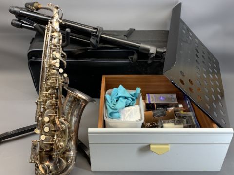 SAXOPHONE BY ARTENI (A1) - with associated items, stand, case, ETC