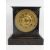 ANSONIA CLOCK COMPANY METAL CASED MANTEL CLOCK - with gilt detail to the case and bezel having a gold tone dial set with Arabic numerals before a jewel spring coiled gong strike pendulum driven movement, pendulum included, 26cms H, 24cms W, 11.5cms D