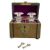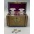 VICTORIAN BRASS MOUNTED SCENT BOTTLE CASKET - domed top with velvet and satin lined interior containing two square clear glass scent bottles with stoppers, keys present, 11.5cms H, 11.5cms W, 7cms D
