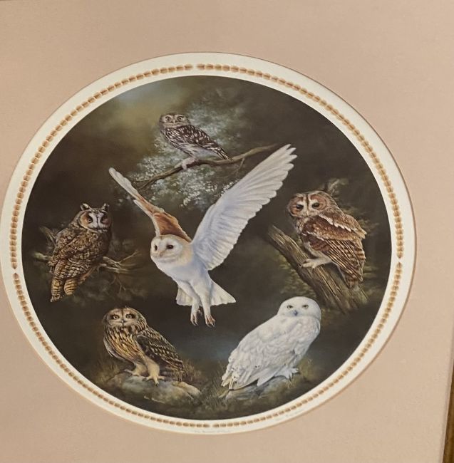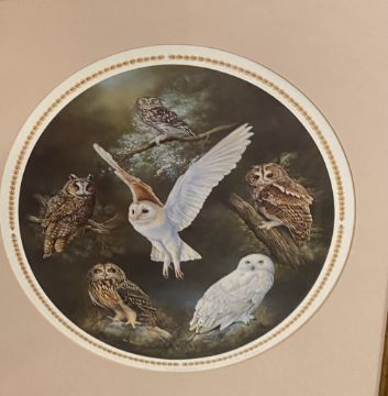 D TURPIN watercolour - boats moored at harbour, signed lower right, 22 x 29cms also A J CHALMERS watercolour - 'Cefncoch', 24.5 x 34cms and KIM THOMPSON oval print - 'The Beauty of Owls' and another print titled 'Tal-y-Llyn'