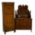 POLISHED OAK HALL ROBE with floral carving to the front, 179cms H, 61cms W, 45cms D and an antique mahogany mirrored dressing chest having two over three drawers, 168cms H, 107cms W, 46cms D
