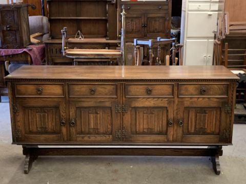 LINENFOLD OAK SIDEBOARD - four drawers over four cupboard doors, 87cms H, 188cms W, 49cms D