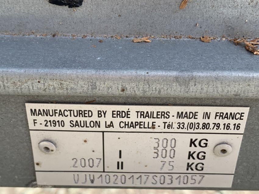ERDÉ 102 TRAILER, 300kg with light board, 87cms H, 184cms L (including tow bar), 120cms W (including wheels)