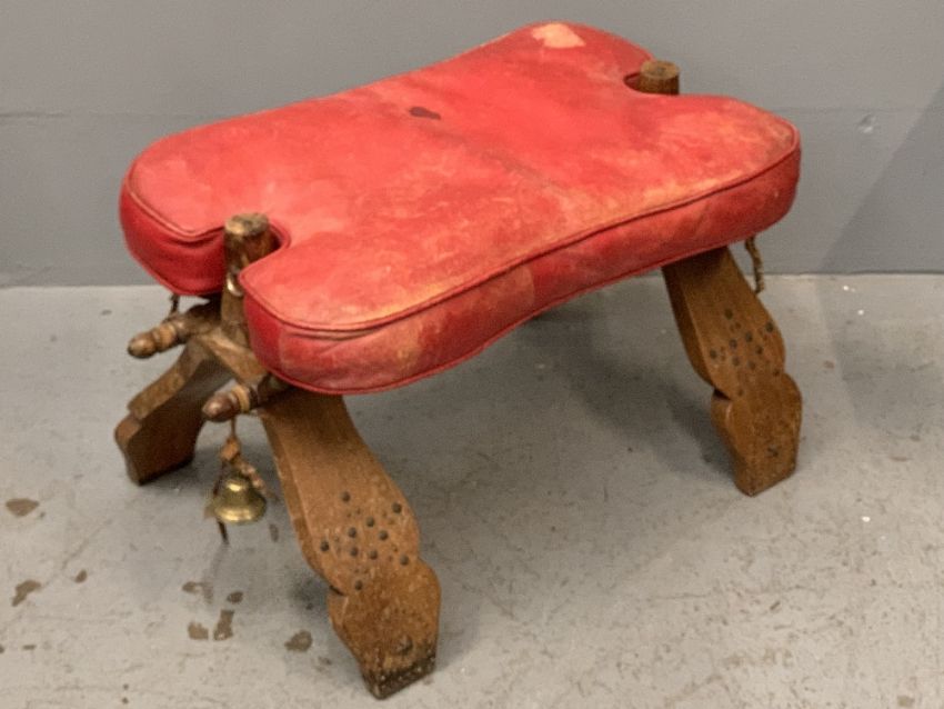 CAMEL STOOL - 40cms H, 71cms W, 41cms D, a spinning chair, 95cms H, 31cms W, 38cms D and a carved Eastern type lantern, 44cms H, 20cms W, 20cms D