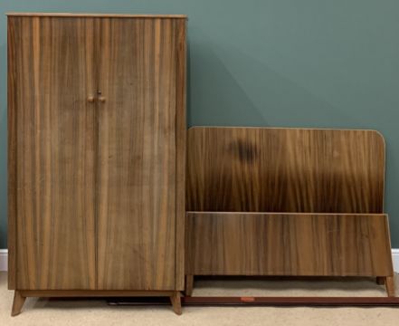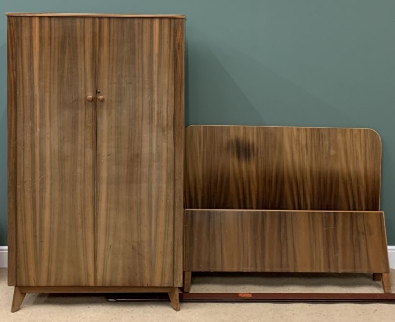 MORRIS OF GLASGOW CUMBRAE FURNITURE - two door wardrobe, 182cms H, 107cms W, 55cms D and bed frame, 107 x 140 x 205cms
