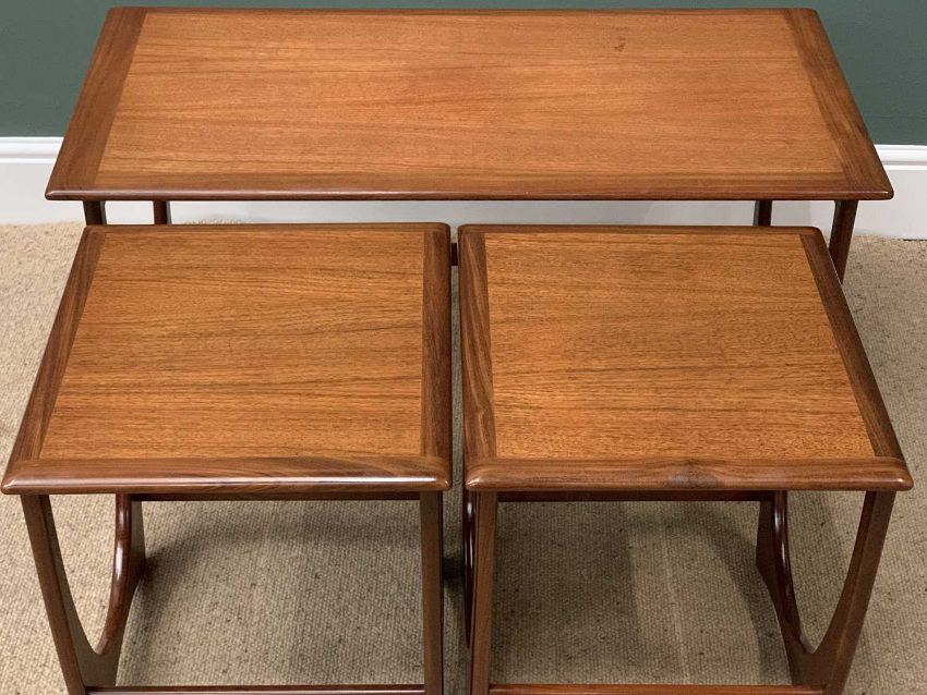 MID-CENTURY TEAK G-PLAN NEST OF THREE TABLES, 50cms H, 100cms W, 50cms D (the largest)