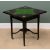 ANTIQUE MAHOGANY EBONIZED HANDKERCHIEF GAMES TABLE with baize top and lower shelf, 73cms H, 50cms W, 50cms D (closed)