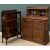 ANTIQUE OAK CHIFFONIER with upper mirrored section, three central drawers and two panelled cupboard doors, 139cms H, 107cms W, 40cms D and a twin glazed door display cabinet with Greek Key detail, 124cms H, 76cms W, 29cms D