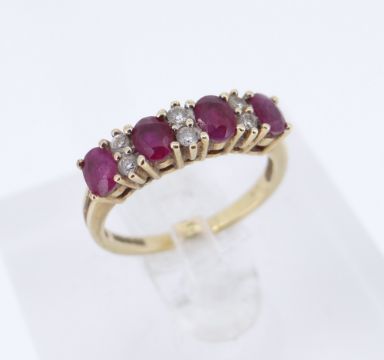 TWO GOLD RINGS comprising 9ct gold ruby and diamond chip ring, ring size J, together with 9ct gold five stone opal and garnet ring, ring size M, 6.6gms overall (2)Provenance: deceased estate Neath Port Talbot, consigned via our Carmarthen Office