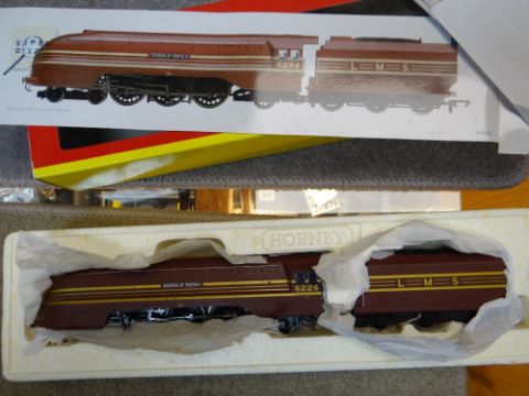 HORNBY 00 GUAGE STEAM LOCOMOTIVES, comprising R2339 Class A4 4468 'Mallard' 4-6-2 loco and tender in LNER blue, R2531 Coronation Class 6226 'Duchess of Norfolk' 4-6-2 loco and tender in LMS red, R2685 1948 Nationalisation West Country Class 34006 'Bude' 4-6-2 loco and tender (3)