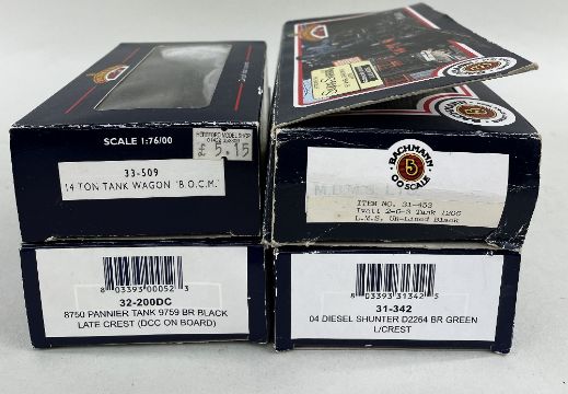 EIGHT BACHMANN BRANCH LINE LOCOMOTIVES & A BRAKE VAN, including 31-342 04 Diesel shunter D2264, 33-830A 25 Ton Queen Mary brake van, 31-803 93xx Mogul Class 7332 2-6-0 loco and tender, 31-556 V2 3650 2-6-2 loco and tender etc. (8)Comments: mostly fair to good