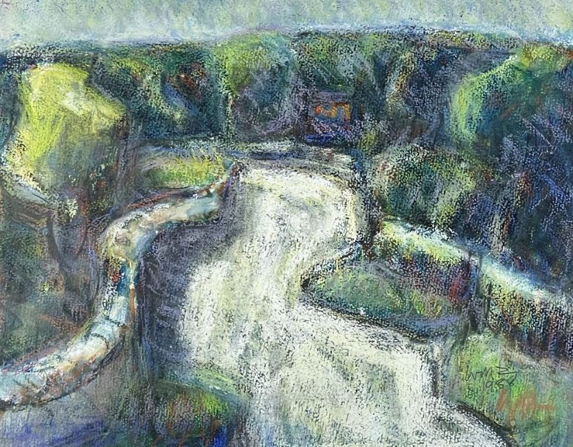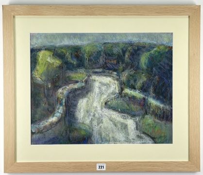Tree lined country lane, entitled verso on Attic Gallery label 'Pembrokeshire Lane', signed with initials and dated 1988