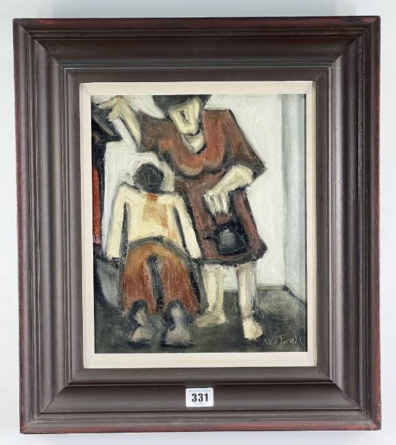 Infant figure and Mother or Grandmother, entitled verso 'Tin Bath', signed