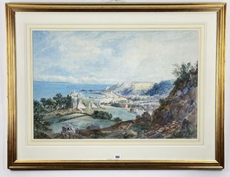 Historic panoramic view of the Swansea Bay area, titled to bottom 'Oystermouth', signed and dated 1906