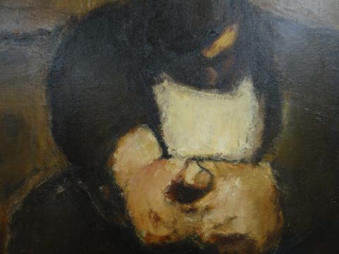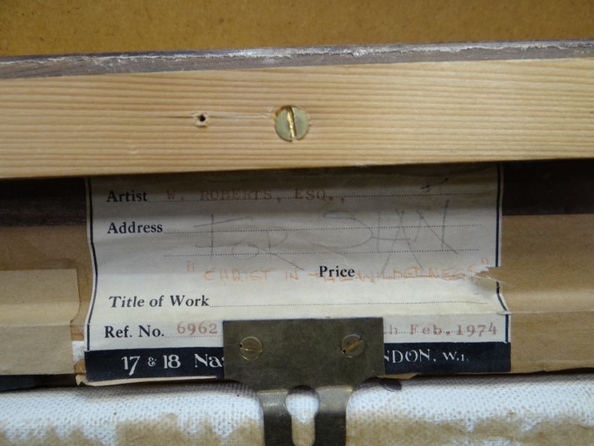 Seated figure with head bowed and hands held together, entitled verso 'Christ in the Wilderness', signed with initials