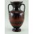 Of Classical Italo-Greek form having twin vertical handles, bellied body, flared neck and turned foot, the red earthenware body printed in black outline with two gryphons attacking a figure on a chariot pulled by two horses