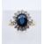 the central sapphire (7 x 6mms) surrounded by fourteen round and two baguette diamonds, ring size Q, 4.9gms