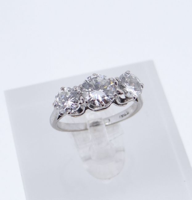 the three claw set diamonds measuring 1.2-1.3cts overall approx., ring size I, 2.9gms